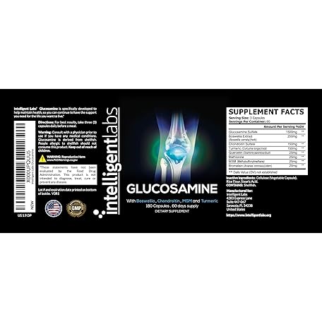 Thông tin sản phẩm Intelligent Labs Glucosamine and Chondroitin High Strength Complex with MSM | 180 Capsules | Immune System Support | with Turmeric, Boswellia, and Quercetin Joint Care Supplements