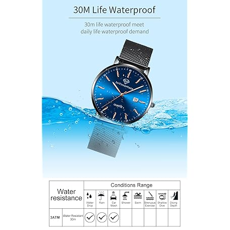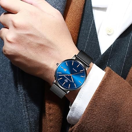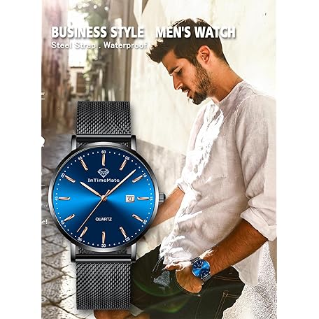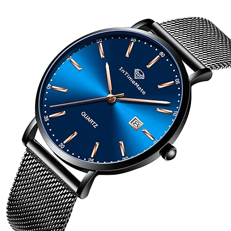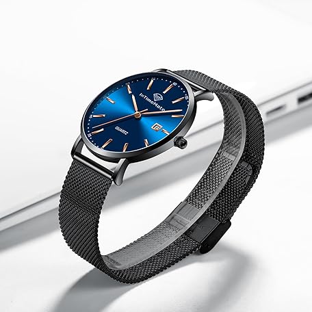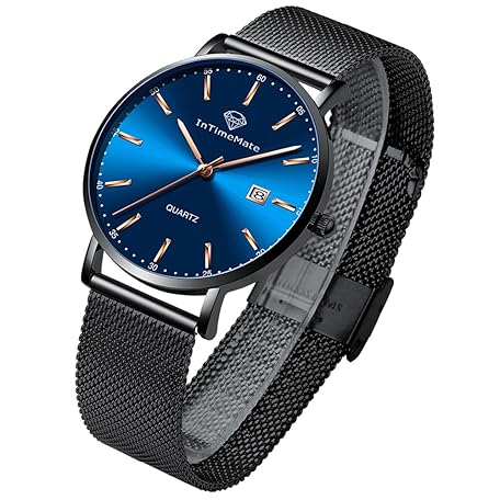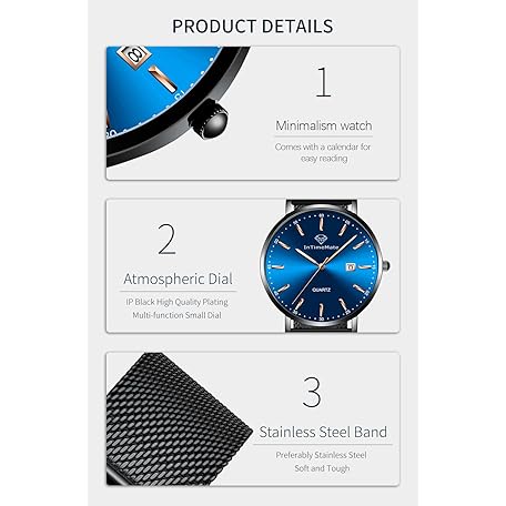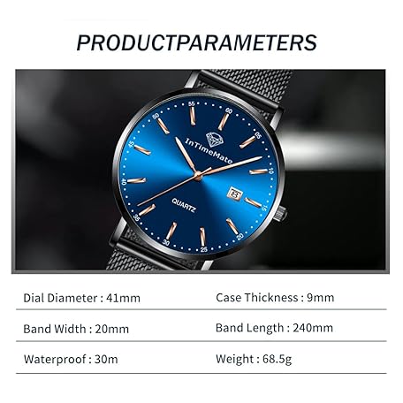 Thông tin sản phẩm INTIMEMATE Men's Black Watch Analog Wristwatch with Day Date, 41mm Diameter, Stainless Steel Band, Waterproof up to 30M