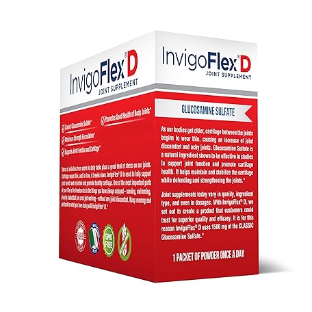Sản phẩm INVIGOFLEX® D - 1500mg of Glucosamine Sulfate Powder (Classic Formulation) - Premium Joint Supplement for Knees, Hands, Back, and Hip Support Packets | 30 Packets đang được bán với giá ưu đãi là $32.6455 tại nước Mỹ.