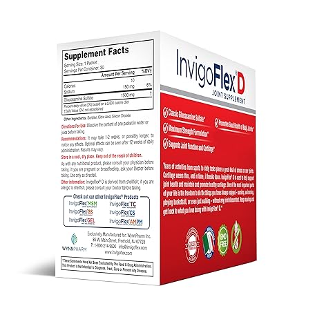 Thông tin sản phẩm INVIGOFLEX® D - 1500mg of Glucosamine Sulfate Powder (Classic Formulation) - Premium Joint Supplement for Knees, Hands, Back, and Hip Support Packets | 30 Packets