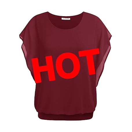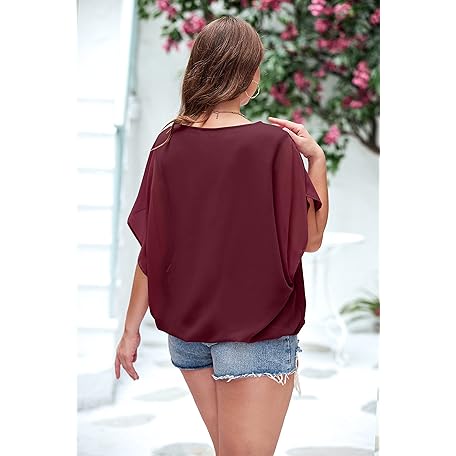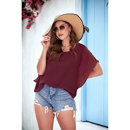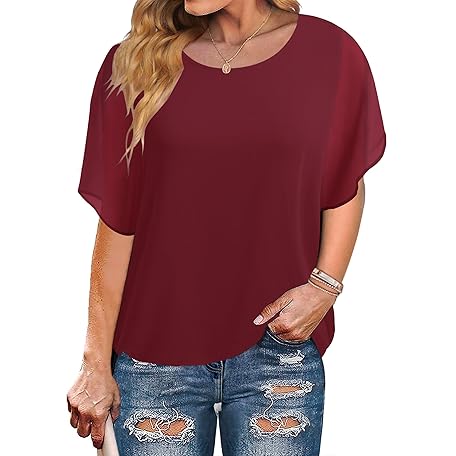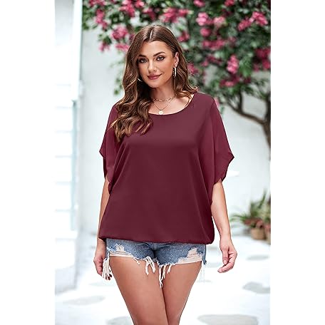 • IN'VOLAND Plus Size Women Chiffon Blouse Batwing Sleeve Tops Scoop Neck Tunic Shirts