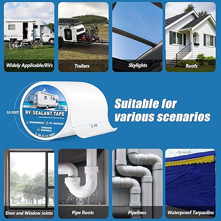• IONCAT RV Roof Sealant Tape, 6 Inch X 50 Feet RV Repair Seal Tape for Camper Trailer Boat Seam Leaks Roofing, UV Resistant & Weatherproof, White