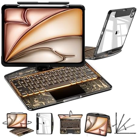 iPad Keyboard Case,for13-inch iPad Air(M3/M2 2025/2024 models)and 12.9-inch iPad Pro(6th to 3rd generation)Transparent keyboard case with RGB backlight, 360° rotating trackpad, and stylus slot,Black