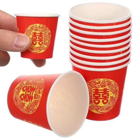 Ipetboom 100pcs Chinese Wedding Paper Cups for Hot Cold Drinks, Double Happiness Beverage Paper Cups for Chinese Wedding Party Birthday Anniversary Christmas, Red