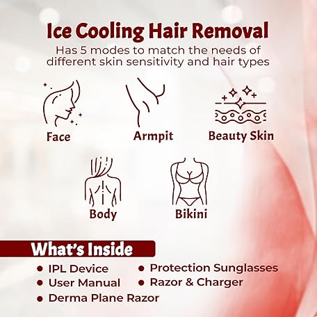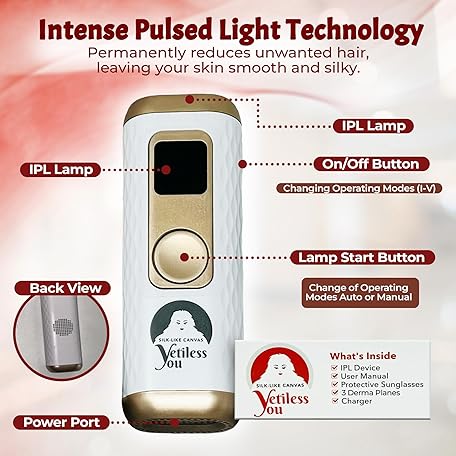 IPL Hair Removal Device, Laser Remover for Women & Men, at-Home Cooling Epilator with Quartz Tube, Hair Removal Machine for Yetiful Skin, Maquina Depilar (White)
