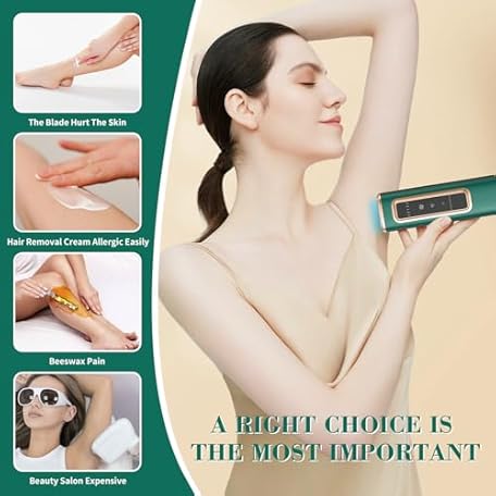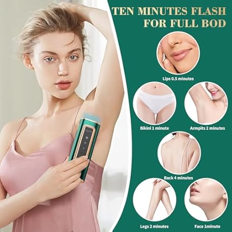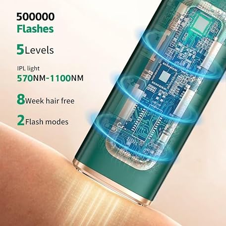 Thông tin sản phẩm IPL Laser Hair Removal Device with Ice Cooling for Women and Men at Home,Infinite Flash,Painless epilator for face underarms arms Bikini line Legs (Green)