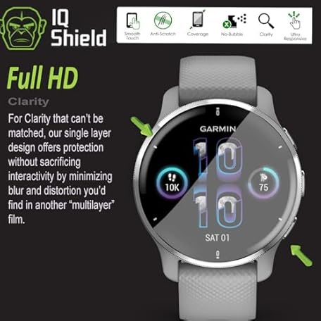 • IQShield 6 Pack for Garmin Venu 2s Screen Protector Easy Install Ultra Thin Smudge Resistant Anti-Scratch Anti-Bubble Clear TPU Film