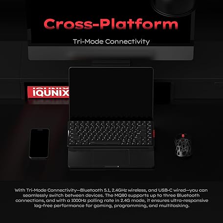 Thương hiệu IQUNIX là cái tên nổi tiếng được rất nhiều khách hàng trên thế giới chọn lựa. Với kiểu dáng đẹp mắt, sang trọng, sản phẩm IQUNIX MQ80 Low Profile Mechanical Keyboard for Work and Gaming Tri Mode Wireless Wired CNC Aluminum Hot Swappable RGB Backlit Long Battery Life VIA Support (Black) là sự lựa chọn hoàn hảo nếu bạn đang tìm mua một món cho riêng mình.