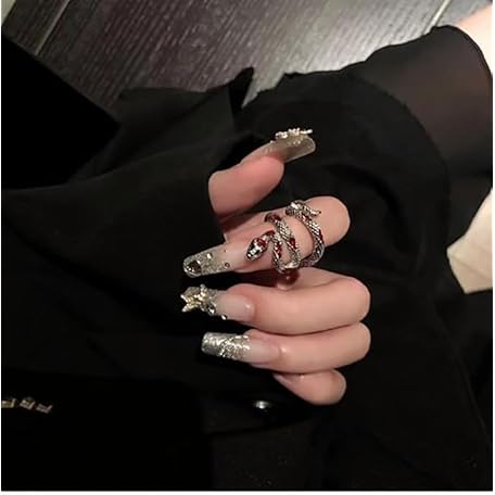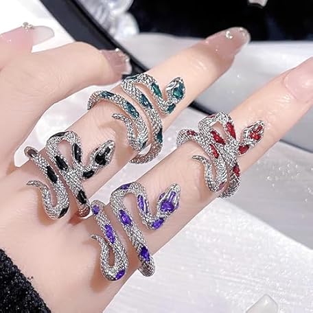 IQUQIXL Snake Ring for Men Women, Animal Punk Rock Snake Enamel Glue Glazed Geometric Temperament Adjustable Opening Ring Gothic Costumes Vintage Jewelry For Men
