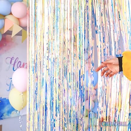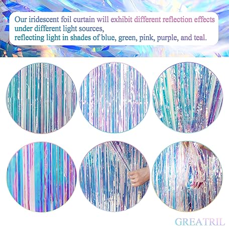 Sản phẩm Iridescent Party Streamers Backdrop - GREATRIL Neon Transparent Holographic Tinsel Foil Fringe Curtain for Mermaid/Frozen/Sea/Euphoria/ERAS Party Theme Decorations 3.2ft x 6.5ft 2 PCS đang được bán với giá ưu đãi là $14.7804 tại nước Mỹ.