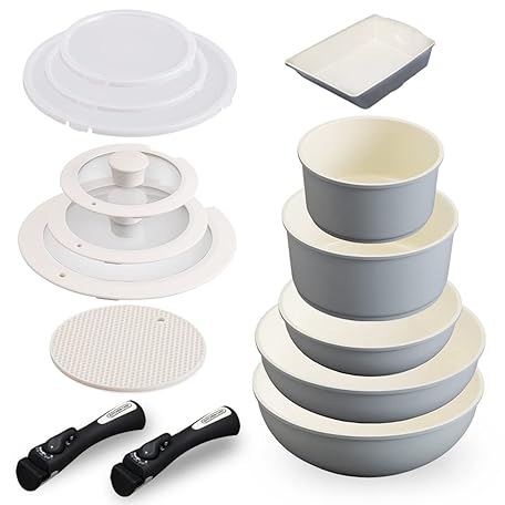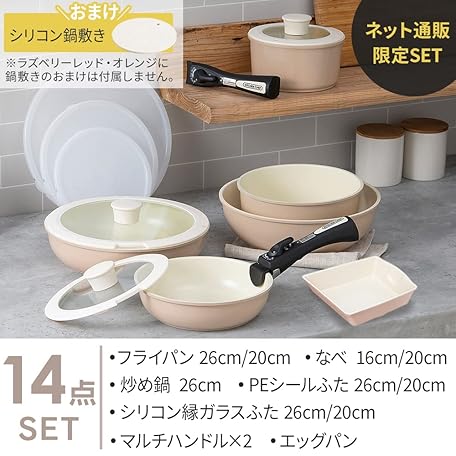 Thông tin sản phẩm Iris Ohyama CC-SE14NP (Time Saving, Energy Saving) Frying Pan, 14-Piece Set, IH Gas Fire, 10.2 inches (26 cm), 7.9 inches (20 cm), Compact Storage, Lightweight, Ceramic Color Pan, Gray