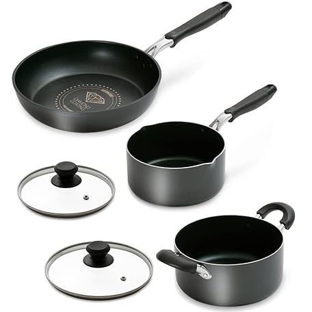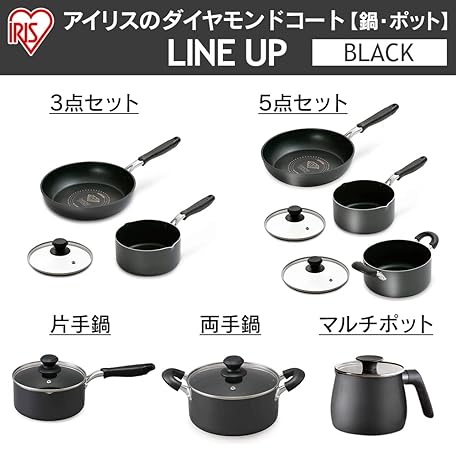Thông tin sản phẩm Iris Ohyama DCI-FP5S Frying Pan Set of 5, Single Handed Pot, Double Handed Pot with Lid, Glass Lid, Diamond Coated Set, Living Alone, For 2 People, Black