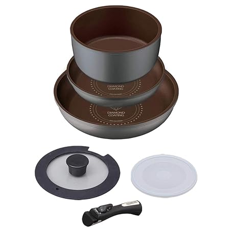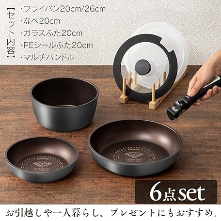 Thông tin sản phẩm Iris Ohyama H-IS-SE6 Frying Pan and Pot Set, Compatible with Induction and Gas Stoves, 6-Piece Set, Diamond Coat, Diamond-Coated Pan, Silver, Removable Handle, Lightweight, Non-Stick, Easy Care