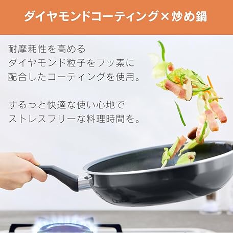 Thông tin sản phẩm Iris Ohyama VDG-W28 Diamond Coated Frying Pan for Frying Pan, Gas Fire, 11.0 inches (28 cm), Black Metallic