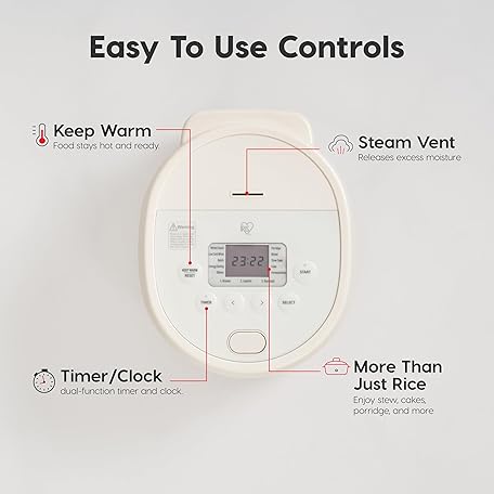 Thông tin sản phẩm IRIS USA Micom Japanese Rice Cooker, 5-Cup Uncooked/10-Cup Cooked, Fuzzy Logic Kitchen Appliance with Recipe Presets, Slow Cooker, Steamer, Hot Pot & Warming Function, Compact & Portable for Healthy Meal Prep