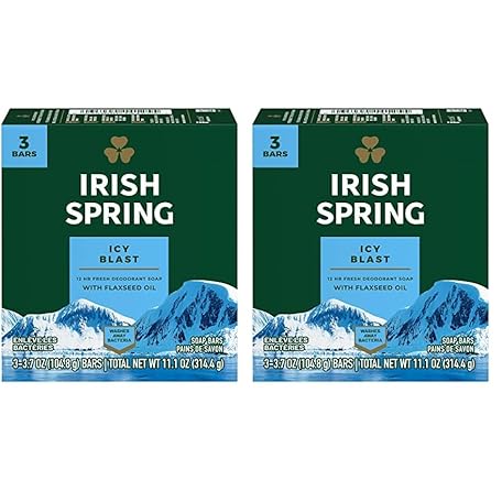 Irish Spring Bath Bar, Icy Blast 3.75 Oz, 3 x 3.75 oz bars (Pack of 2)