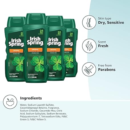 Sản phẩm Irish Spring Original Body Wash for Men - 18 Fl Oz (Pack of 4) đang được bán với giá ưu đãi là $30.0731 tại nước Mỹ.