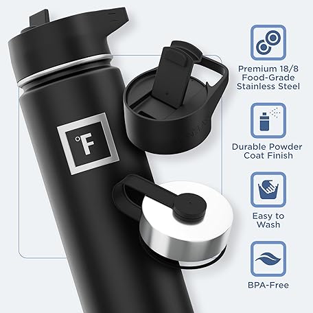 Sản phẩm IRON °FLASK Camping & Hiking Hydration Flask with 3 Lids - Stainless Steel, Double Walled & Vacuum Insulated Water Bottle - Leak Proof & BPA Free (Midnight Black, Straw - 22 oz) đang được bán với giá ưu đãi là $25.8766 tại nước Mỹ.