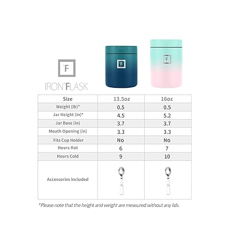 Thông tin sản phẩm IRON °FLASK Jar for Hot Food & Soup - 16 Oz Insulated Food Jar with Foldable Spoon - Leak Proof, Stainless Steel, Storage, Canteen, Double Walled - 16 Oz - Bubble Gum