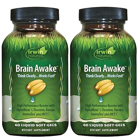 Irwin Naturals Brain Awake - 60 Liquid Softgels, Pack of 2 - Enhanced Mental Performance, Increased Focus, Clarity & Concentration - Nootropic Booster with L-Theanine, Bacopa, MCTs