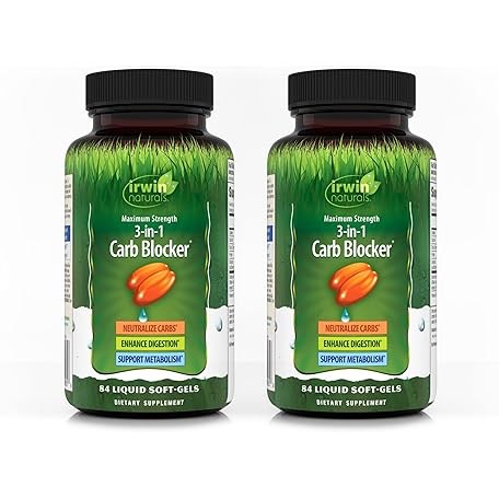 • Irwin Naturals Maximum Strength 3-in-1 Carb Blocker - 84 Liquid Soft-Gels, Pack of 2 - Neutralize Carbohydrates - 84 Total Servings