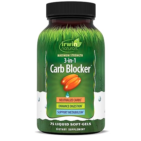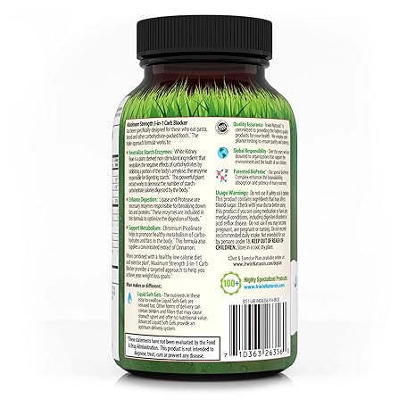 • Irwin Naturals Maximum Strength 3-in-1 Carb Blocker - Neutralize Carbohydrates - 75 Liquid Softgels