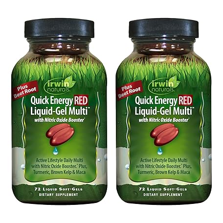 • Irwin Naturals Quick Energy RED Liquid-Gel Multi - 72 Liquid Soft-Gels, Pack of 2 - with Nitric Oxide Booster & Super Foods - 72 Total Servings