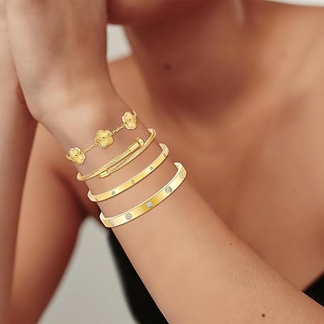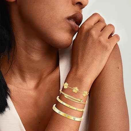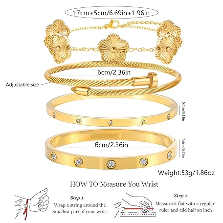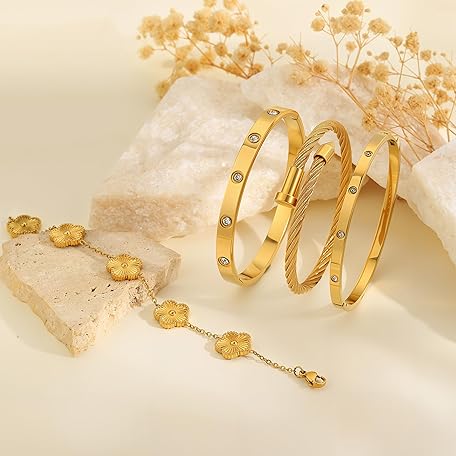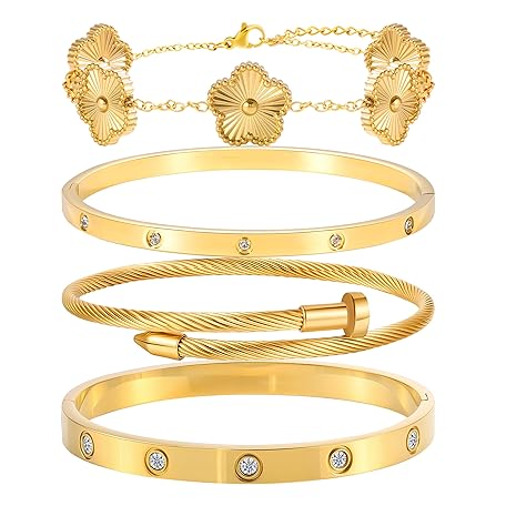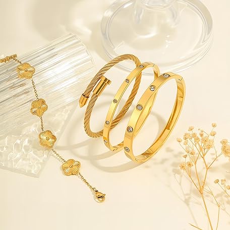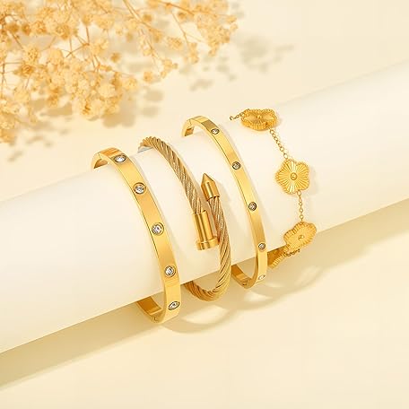 Sản phẩm ISELBDR 18K Gold Bracelets for Women - Stackable Clover & Nail Love Bangle Set - Non-Tarnish Stainless Steel Jewelry Gift for Valentine's, Mother's Day & Christmas đang được bán với giá ưu đãi là $18.421 tại nước Mỹ.