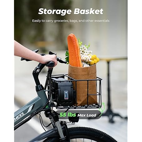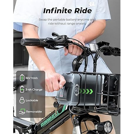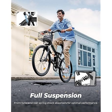 isinwheel M40 Folding Electric Bike for Adults with Basket, Full Suspension, 21700 Cell 10Ah Battery, Dual USB Charging Ports, 20mph Ebike, 500W Electric Mountain Bike, 26" Foldable Electric Bicycles