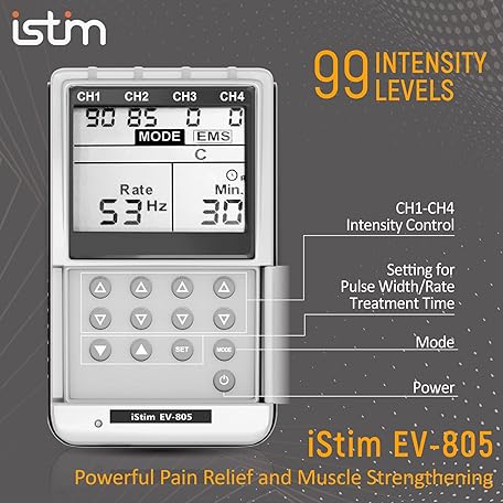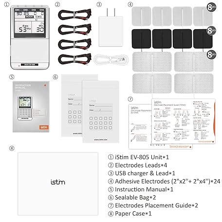 Thương hiệu iSTIM là cái tên nổi tiếng được rất nhiều khách hàng trên thế giới chọn lựa. Với kiểu dáng đẹp mắt, sang trọng, sản phẩm iSTIM EV-805 TENS EMS 4 Channel Rechargeable Combo Machine Unit - Muscle Stimulator + Back Pain Relief and Management- 24 Programs/Backlit (Including Electrodes Pads) là sự lựa chọn hoàn hảo nếu bạn đang tìm mua một món cho riêng mình.
