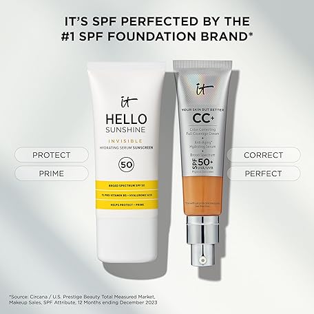 Thông tin sản phẩm IT Cosmetics Hello Sunshine Invisible Sunscreen for Face SPF 50 - Sunscreen, Hydrating Serum & Makeup Primer - 1% Pro-Vitamin B5 & Hyaluronic Acid - HSA/FSA Eligible - No White Cast