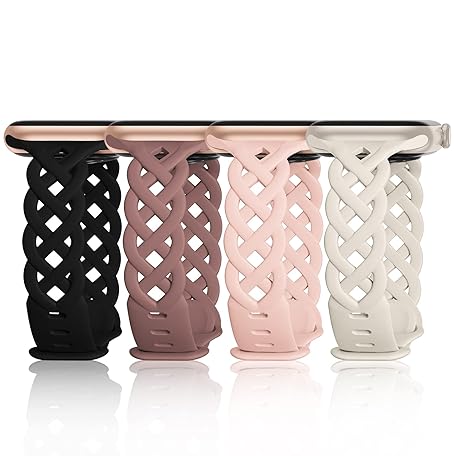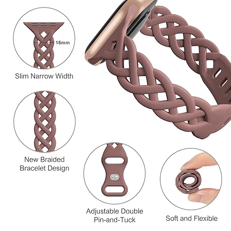 Sản phẩm iWabcertoo Slim Silicone Bands for Apple Watch Band 40mm 38mm 41mm 42mm 44mm 45mm 49mm Braided Lace Thin Wristbands for iWatch SE Series 8 7 6 5 4 3 2 1, Black/Starlight/Violet Smoke/Sand Pink đang được bán với giá ưu đãi là $6.7471 tại nước Mỹ.