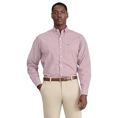 • IZOD mens Performance Comfort Long Sleeve Gingham Button Down Shirt