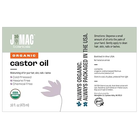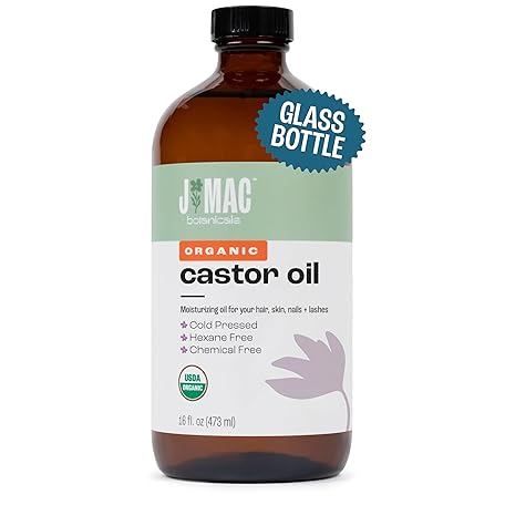 Thông tin sản phẩm J MAC BOTANICALS, Organic Castor Oil Cold Pressed (Glass Bottle, 16 oz) pure unrefined, hexane free for face, skin, eyelashes, pack wraps, pads