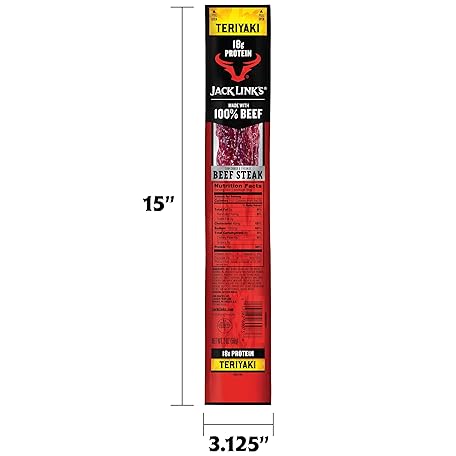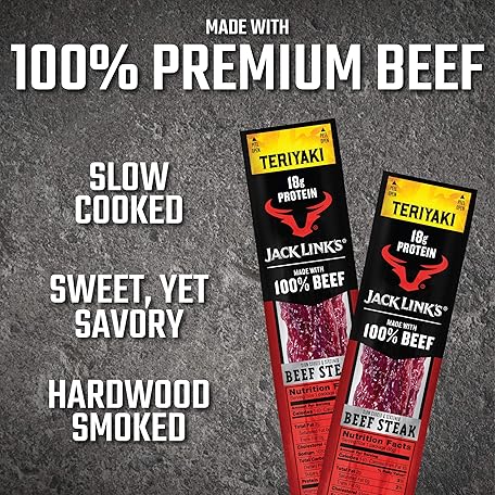 Thông tin sản phẩm Jack Link's Beef Steak, Teriyaki - Protein Snacks, Meat Snack with 18g of Protein, Made with 100% Beef, Individually Wrapped Bulk Snack Pack, Keto Friendly - 2 Oz. (12 Count)