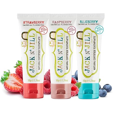 Jack N' Jill Natural Toddler Toothpaste - Fluoride Free Training Toothpaste for Toddlers 1-3, 40% Xylitol, BPA Free - 1.76 oz (Variety Pack of 3)
