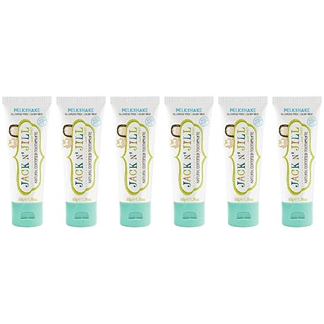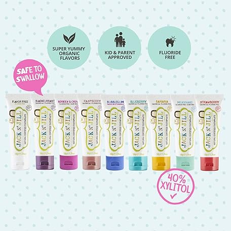 • Jack N' Jill Natural Toothpaste for Kids - Fluoride Free Toothpaste, 40% Xylitol, BPA Free - Milkshake, 1.76 oz (Pack of 6)