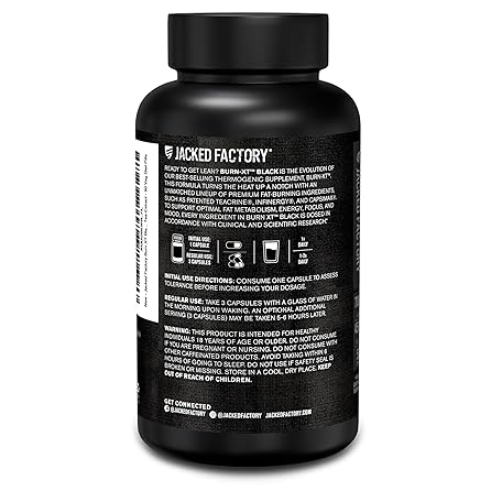 Thông tin sản phẩm Jacked Factory Burn XT Black Thermogenic Fat Burner - Weight Loss Supplement, Appetite Suppressant, Nootropic Energy Booster | TeaCrine, Acetyl L-Carnitine, Green Tea Extract - 90 Veg Diet Pills