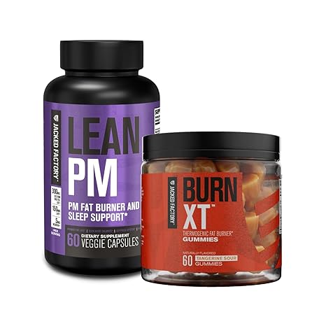 Jacked Factory Lean PM Night Time Fat Burner, Sleep Aid Supplement (60 Capsules) & Burn-XT Weight Loss Gummies - Thermogenic Fat Burner & Appetite Suppressant (Tangerine Sour, 60 Gummies)