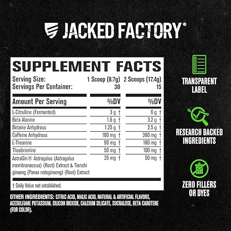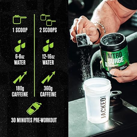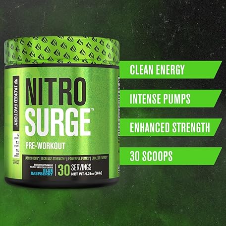 Thông tin sản phẩm Jacked Factory NITROSURGE Pre Workout Supplement - Instant Strength Gains & Intense Pumps (30 Servings, Sour Peach Rings) & Creatine Monohydrate for Muscle Growth (30 Servings, Unflavored)
