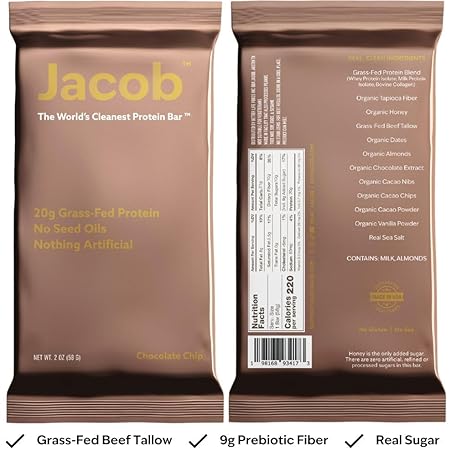 • Jacob Bar, Protein Bars, Chocolate (9 Bars Total) - 20g Grass-Fed Protein, No Seed Oils, Nothing Artificial