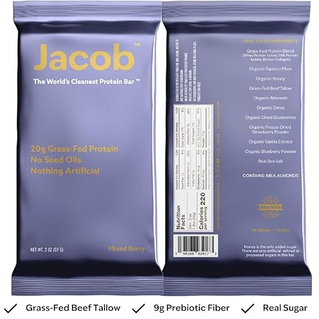 • Jacob Bar, Protein Bars, Mixed Berry (9 Bars Total) - 20g Grass-Fed Protein, No Seed Oils, Nothing Artificial