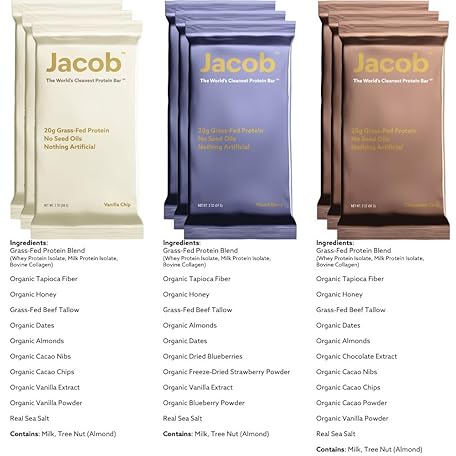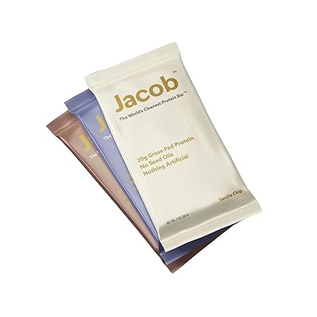 Jacob Bar, Protein Bars, Variety Pack (9 Bars Total) Contains 3 of Each; Chocolate, Vanilla, Berry - 20g Grass-Fed Protein, No Seed Oils, Nothing Artificial