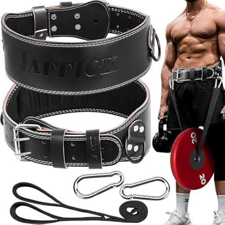 Sản phẩm Jaffick Leather Weight lifting belt & 2-in-1 Dip Belt with Rope for Weightlifting Pull Up Gym Powerlifting Squat Bodybuilding Waist Support for Men Women đang được bán với giá ưu đãi là $29.4082 tại nước Mỹ.