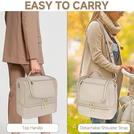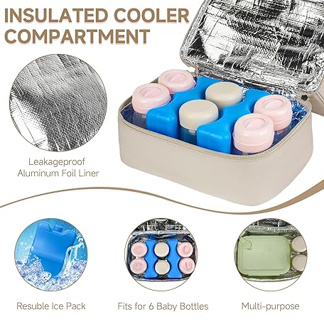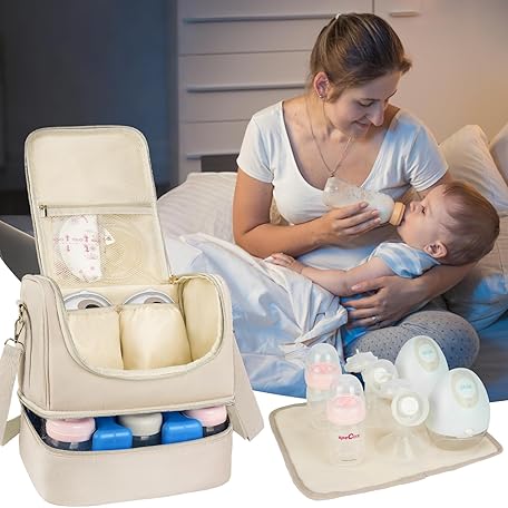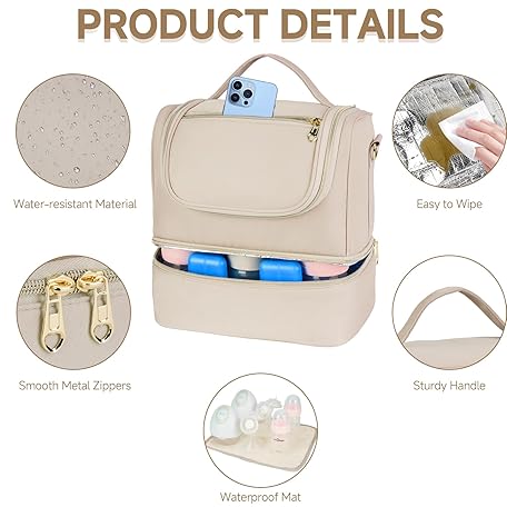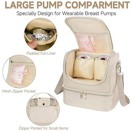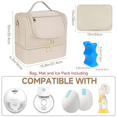 Thông tin sản phẩm Jaffzora Wearable Breast Pump Bag with Cooler Compartment Fits for Willow/Elvie/Momcozy M5/S12 Pro/Medela, Breast Milk Travel Tote Bag with Ice Pack & Waterproof Mat,Apricot
