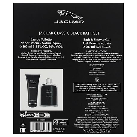Thương hiệu Jaguar là cái tên nổi tiếng được rất nhiều khách hàng trên thế giới chọn lựa. Với kiểu dáng đẹp mắt, sang trọng, sản phẩm Jaguar Classic Black for Men - 2 Pc Gift Set 3.4oz EDT Spray, 6.7oz Bath and Shower Gel là sự lựa chọn hoàn hảo nếu bạn đang tìm mua một món cho riêng mình.