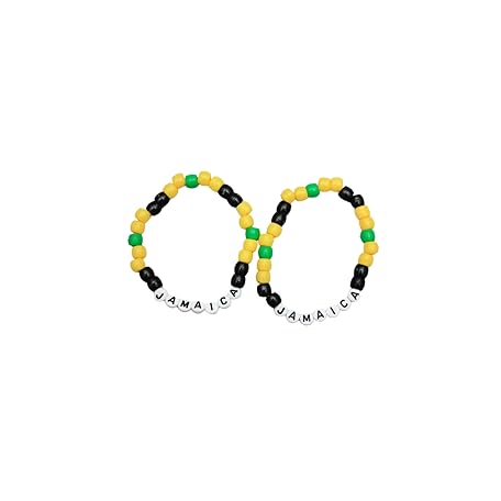 Generic Jamaica Beaded Bracelet, Flag Colors Black Yellow Green, Set of 2, Travel Souvenir Gift