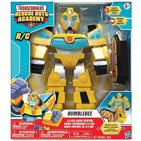 Thông tin sản phẩm Jam'n Hasbro: Transformers Rescue Bots Academy: Bumblebee RC Robot - 12" Walking Transformer, Lights & Sounds, Radio Controlled, Full Function, 2.4 GHz
