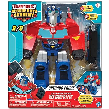 Thông tin sản phẩm Jam'n Hasbro: Transformers Rescue Bots Academy: Optimus Prime RC Robot - 12" Walking Transformer, Lights & Sounds, Radio Controlled, Full Function, 2.4 GHz