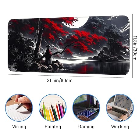 Sản phẩm Japanese Dark Red Moon Gaming Mouse Pad, Extended Mouse Pad with Non-Slip Base, Full Keyboard Pad with Stitched Edges, Large Desk Pad for Gaming, Office, Home 31.5 x 11.8 Inch đang được bán với giá ưu đãi là $18.5191 tại nước Mỹ.
